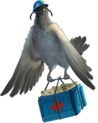 The Volunteers (aka "pigeons") are the medics of Tooth and Tail, a Tier-1 unit which heals rather than attacks. Pigeons possess no offensive capabilities at all and instead stay at maximum range at all times, healing any non-structure unit that is not at full health. The Volunteers' med-packs heal 1 health per second for 2 seconds, and can only deliver a care package once every 2 seconds. A single unit can receive aid from up to 9 pigeons at once, allowing the healing per second to stack. Pigeons, naturally, are flying units, providing an increased visibility range and the ability to fly over cliffs and water without penalties.
